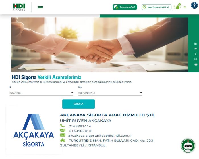 Bundan sonra sigorta şirketimiz resmi olarak HDI Sigorta Sultanbeyli Acentesi olarak faaliyet göstermeye ve müşterilerimize hizmet vermeye devam edecektir. Sizin için tüm sigorta işlemlerine HDI Sigorta güvencesi ile hizmet vermeye devam edeceğiz. Başta AKÇAKAYA SİGORTA ARACILIK HİZMETLERİ LTD.ŞTİ. AİLESİ ’ne ve HDI SİGORTA A.Ş. ’ye hayırlı olmasını temenni ederek. Kamuoyunun bilgisine saygıyla sunarız.